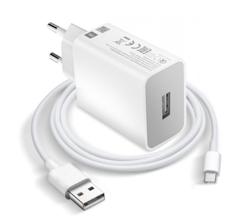 شاحن شاومي سريع عظمة )محول الطاقة) مع منفذ يو اس بي وكابل تايب سي .