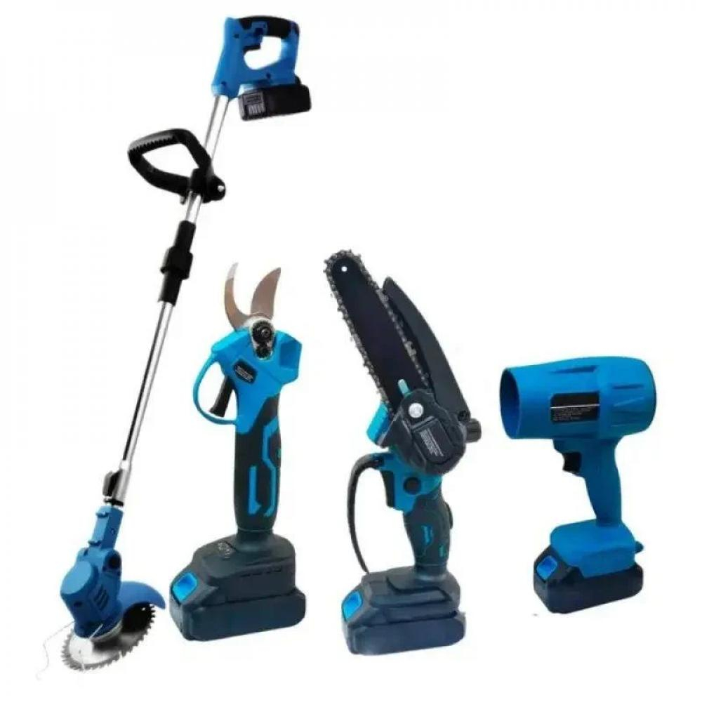 طقم عده زراعي 4 قطع ( مقص قنابه و منشار و بلور و حرميش على البطارية )